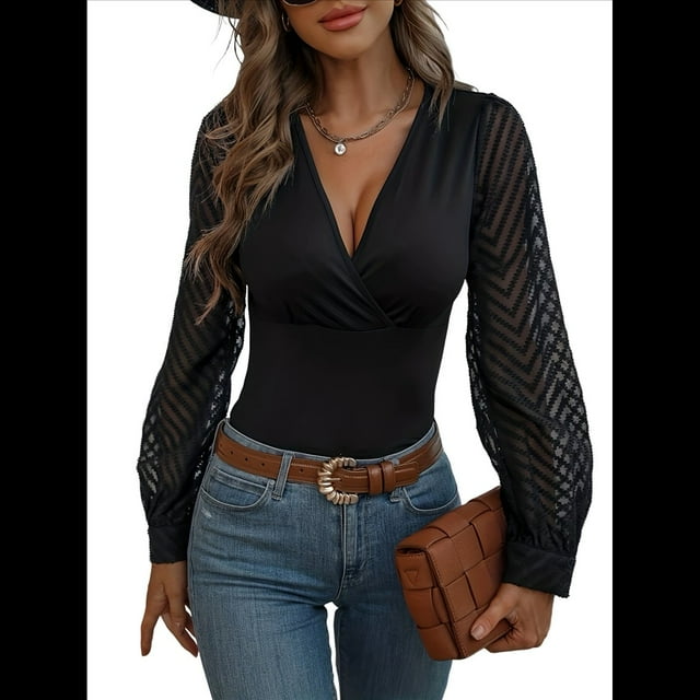 Blusas de Mujer con Escote en V Profundo y Cruzado, Camisetas de con Lunares y Larga, Blusas Informales. Negro S
