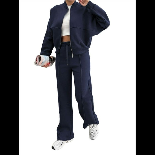 Conjuntos de Salón para Mujer, Conjunto Deportivo de 2 Piezas, Sudadera, Pantalón Deportivo de Pierna , Conjunto Deportivo A Juego Azul Oscuro XXL