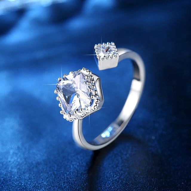 Anillos para mujer, regalos para mujer, anillo giratorio abierto y ajustable con diamantes de moda para mujer.
