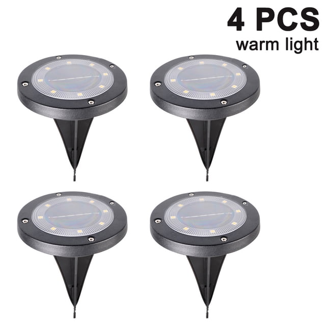 FloreceBien - Paquete de 4 luces solares para suelo, 8 luces LED de disco solares para exteriores, luces impermeables para suelo, luces solares para jardín, luces de paisaje para caminos, patios,