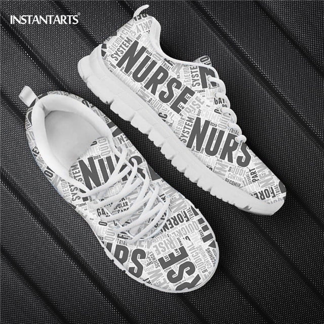 Zapatos planos Doginthehole de enfermera con diseño de periódico para mujer, zapatillas ligeras con cordones de malla para despertar, calzado transpirable de verano para damas y niñas.