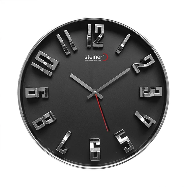 Reloj De Pared Steiner Análogo con Numeros En Relieve 30cm Silver & Black