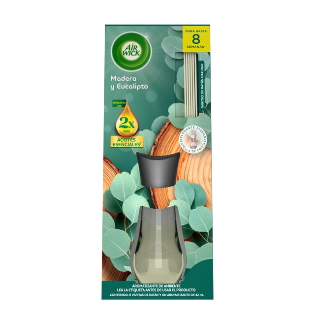Aromatizante de ambiente, Air Wick®, Reed Diffuser, aromatizante con 6 varitas de ratán, Maderas y Eucalipto 42 mL