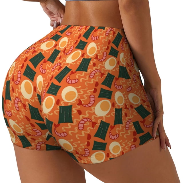 Balery Ramen Noodle Soup Pantalones cortos de entrenamiento estampados para mujer, sin costuras, ajustados, para gimnasio, yoga, correr, deportes, ejercicio activo, fitness.-Small