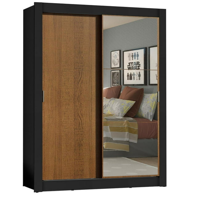Ropero Closet Madesa Denver 2 Puertas Corredizas con Espejo Negro/Marrón