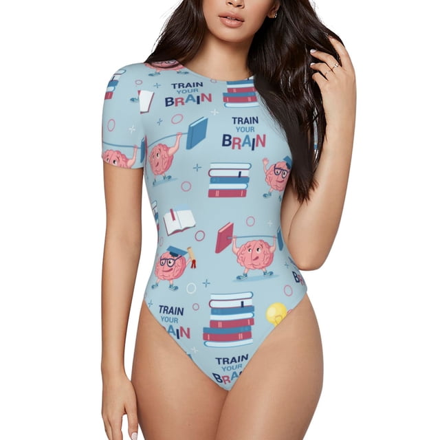 Balery Brain Training Body de cuello redondo de manga corta para mujer Tops de manga corta Tops básicos-Small