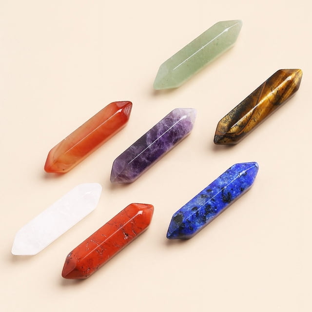 Joyería de doble punta de columna hexagonal de piedra cruda columna de cristal pulido colgante hexagonal de piedra desnuda Artesanía de cristal