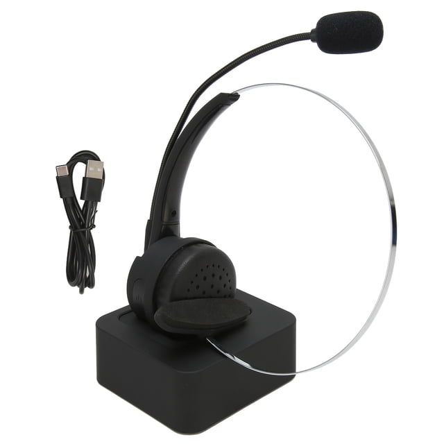 Auriculares de teléfono Bluetooth monoaurales con cancelación de ruido y volumen ajustable para negocios con micrófono y base de carga