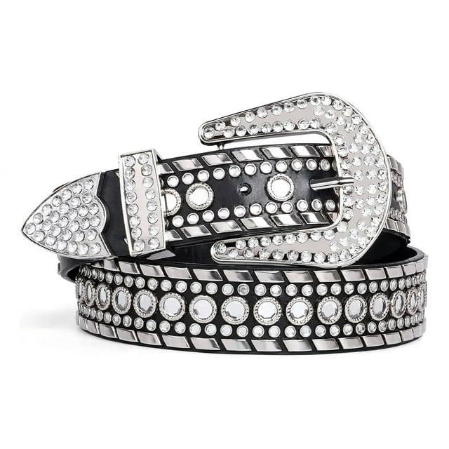 Cinturón De Cuero Occidental Con Tachuelas De Diamantes De I Color Negro Talla 105
