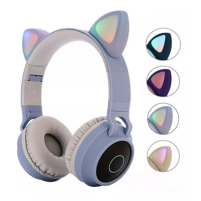 Audifonos Fashion Led Orejas De Gato Bluetooth Color Celeste