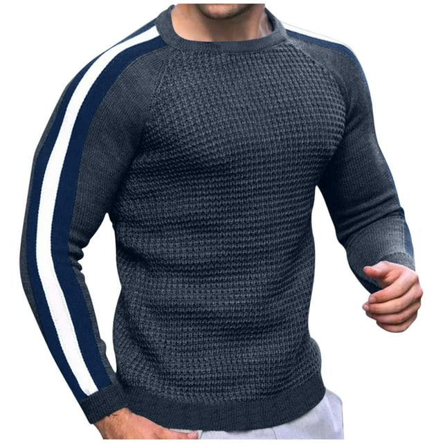 pstuiky camisetas de manga larga para hombre, Suéter de cuello redondo con bloques de color para hombre, suéter de punto, suéter de manga larga cálido e informal para hombre xl