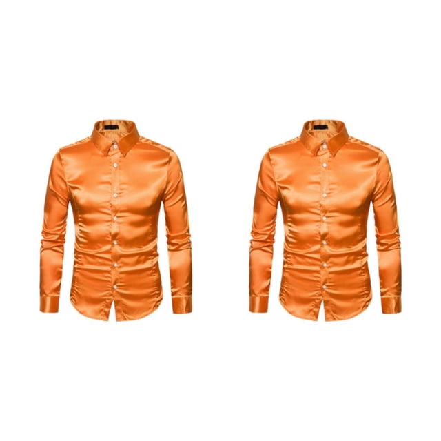 Minnieouse Slim Fit Camisetas de manga larga para hombres - Camisa de satén transpirable y lavable a máquina para hombre Camisa formal de manga naranja S 2piezas