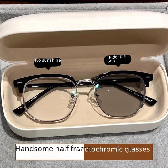 Gafas para miopía que cambian de color, adecuadas para hombres que trabajan en ingeniería científica, con prescripción ajustable, marco orbital, medio marco, lente plana, resistente a los rayos UV