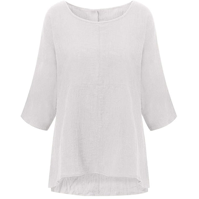 Blusa holgada de algodón con mangas 3/4 y remangada de tres cuartos para mujer, talla grande, color blanco, talla M