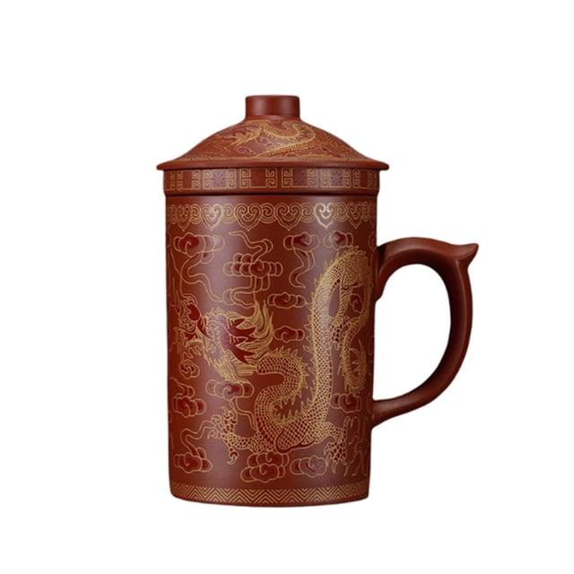 Naiovety Taza de té de arcilla púrpura con tapa, exquisitos recipientes para bebidas, hogar, oficina, redondo, Vintage, estilo chino, taza para beber, Cocina y Comedor Rojo Naiovety HA081011-02