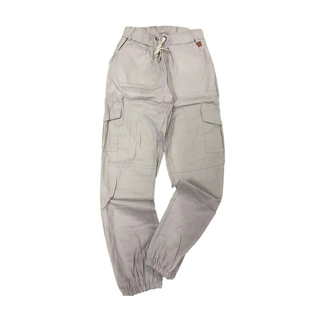 Pantalones de algodón Minnieouse para hombre informales lavables con cordón cintura media Gris blanco L