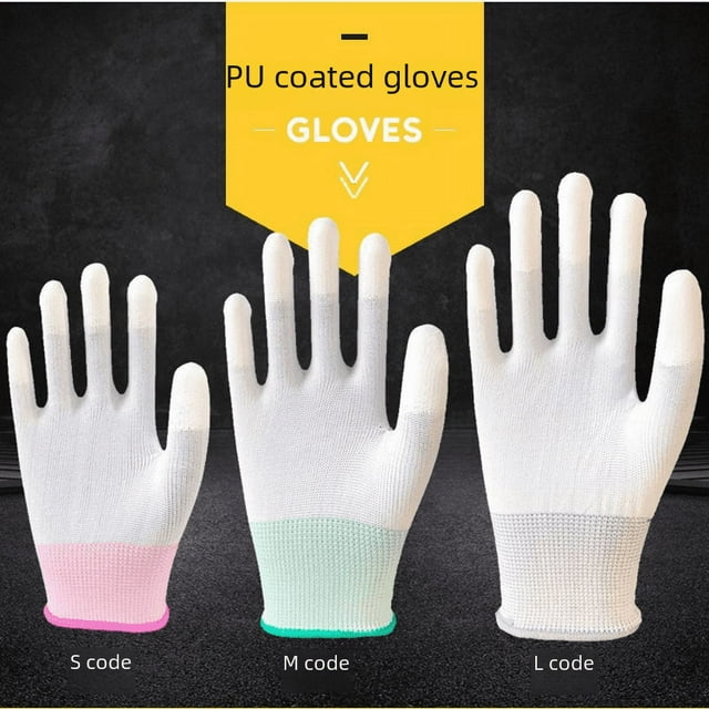 Guantes de trabajo blancos libres de polvo con revestimiento de dedos antiestático de nailon PU y revestimiento de inmersión en la palmaguantes de trabajo blancos libres de polvo con revestimiento de dedos antiestatico de nailon pu y revestimiento de inmersion en la palma