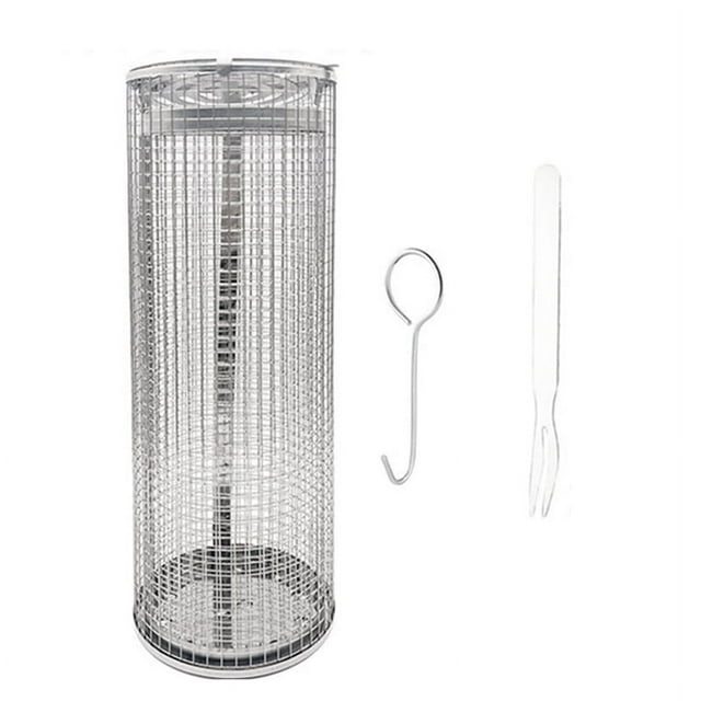 Cesta rodante para asar al aire libre, cilindro de malla rodante para asar carne, verduras y papas fritas.