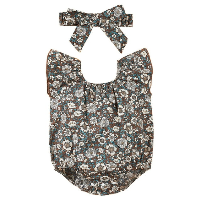 2x Peleles para recién nacidos, monos con mangas abullonadas, estampado floral, cuello redondo y volantes 12 a 18 meses