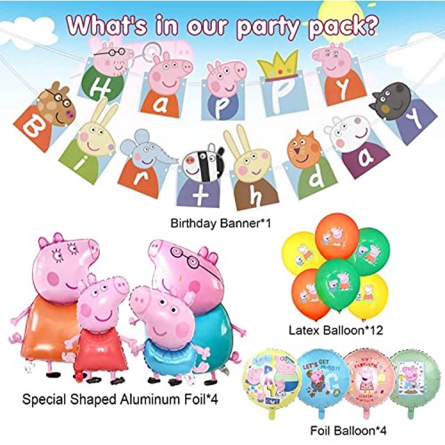 36 piezas de suministros para fiestas de cumpleaños de Peppa Pig, globos de cumpleaños de Gift finds Gift finds