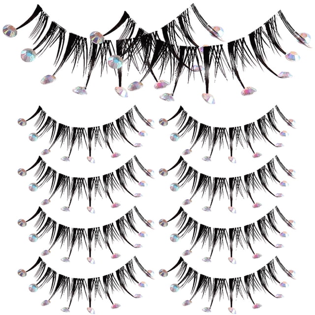 5 pares de pestañas postizas naturales con diamantes de imitación decorativos.