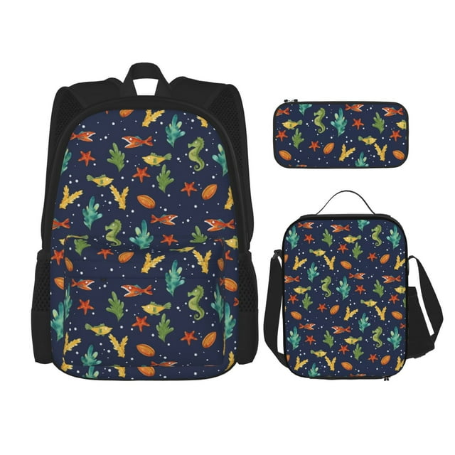 Balery Shells and Seaweed Mochila Escolar 3 en 1 para Niños - Mochila Resistente con Lonchera Térmica y Estuche - Mochila Escolar para Niños y Niñas