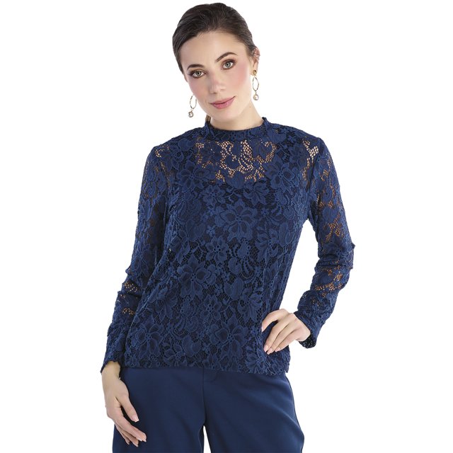 Imagen destacada 0 de Blusa Azul Marino con Encaje Devendi Denim Co. 215-80, 0 de 3