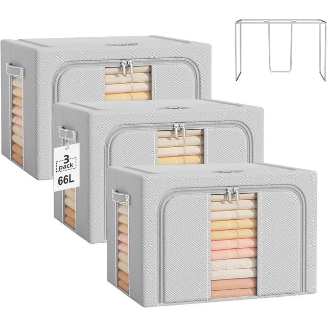 Bolsas Plegables de Almacenamiento de Gran Capacidad: 3 Pcs Caja de Almacenamiento de Ropa, Organizador de Ropa con Ventana Transparente y con un mango resistente, para Mantas y Edredones (3)