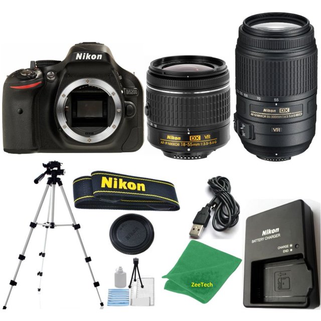 Cámara Réflex Digital NIKON D5200 DX - Versión Internacional + Lente AF-P 18-55 Mm + VR 55-300 Mm + KIT de Inicio + Trípode