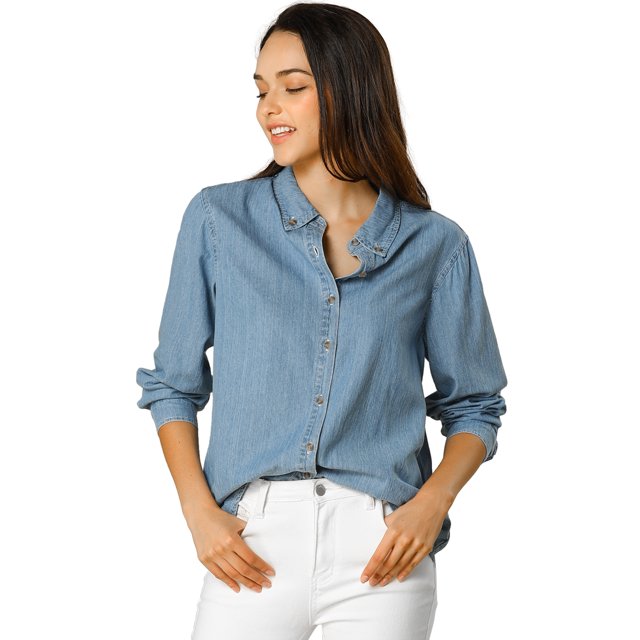 Camisa Vaquera Holgada Con Botones Y Manga Larga Clásica Para Mujer Azul claro Mcamisa vaquera holgada con botones y manga larga clasica para mujer azul claro m