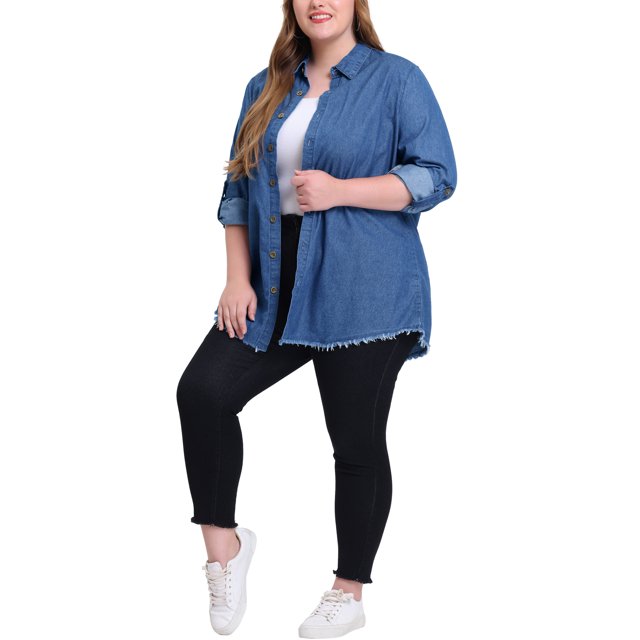Camisas de talgrande Agnes Orinda Camide mezclilcon botones de cambray Azul marino 3Xcamisas de talgrande agnes orinda camide mezclilcon botones de cambray azul marino 3xplus size chambray shirts for women button down denim shirts tops blue 2xcamisas de talgrande pamujer camide mezclilcon botones de cambray azul marino 4x