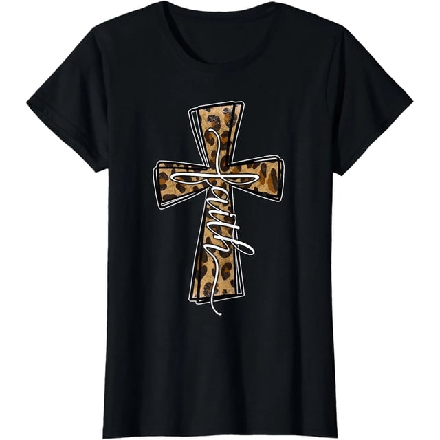Camiseta de Mujer Cristiana con Estampado de Leopardo y Cruz - Diseño Divertido y Atrevido