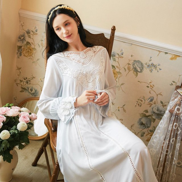 Camisón de algodón de manga larga para mujer, vestido largo de otoño e invierno, ropa de casa de princesa dulce, pijama largo holgado de talla grande estilo palacio, pijama de algodón para