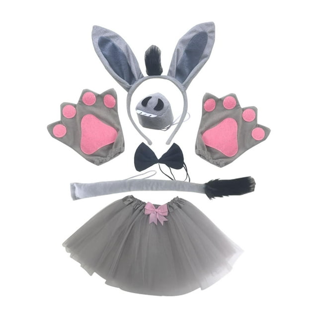 Disfraz de burro Animal, pajarita y cola, accesorios de Cosplay, guantes para la nariz, falda tutú, aro para el pelo para actuación, Festival, juego jinwen Disfraz de burro