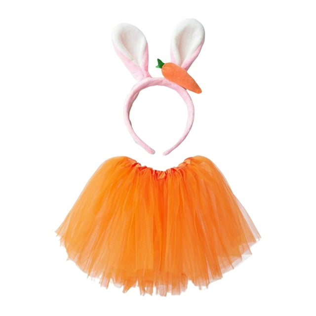 Disfraz de Conejo de Pascua BuyWeekMX diadema con orejas de conejo y tutú naranja