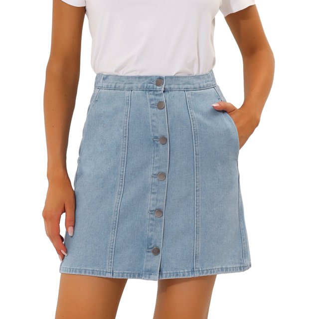 Falda corta de mezclilla Allegra K con botones y bolsillos Azul gris M