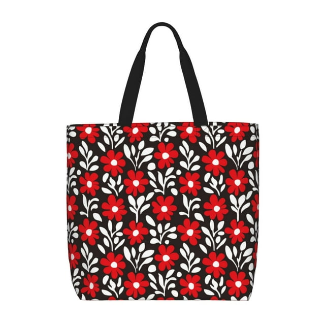 Fotbe Red Floral Bolsa Tote con Estampado para Mujer, Bolsos con Cremallera, Bolsa de Hombro Casual de Gran Capacidad con Bolsillos Internos