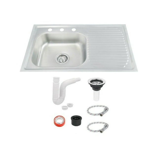 Fregadero Tarja De Empotrar Acero Inox 80x50 C/kit S/llaves (Escurridor Derecho)