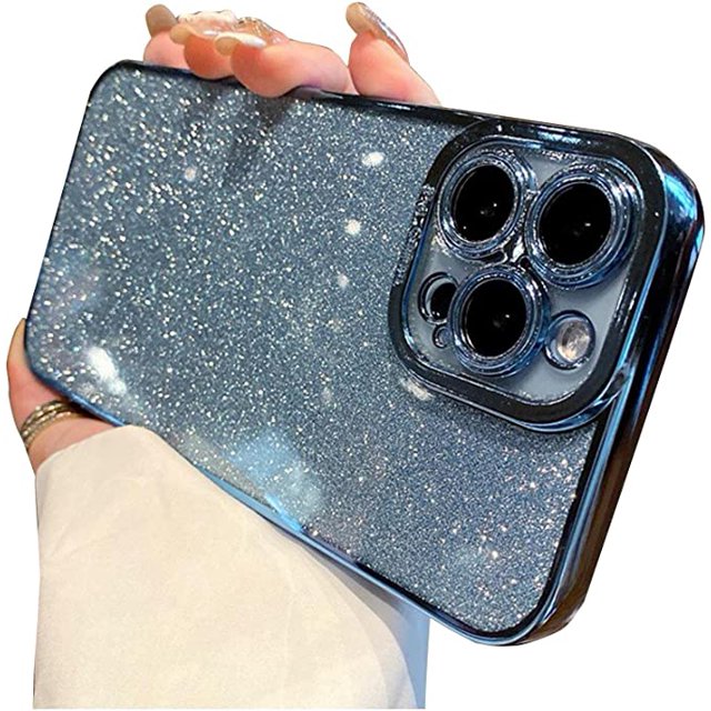 Funda para iPhone 14 Pro Max JAMW con purpurina azul claro Sencillez