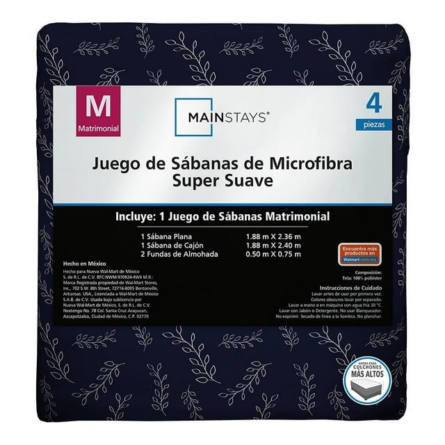Juego De Sábanas Mainstays Matrimonial Hojas MARINO