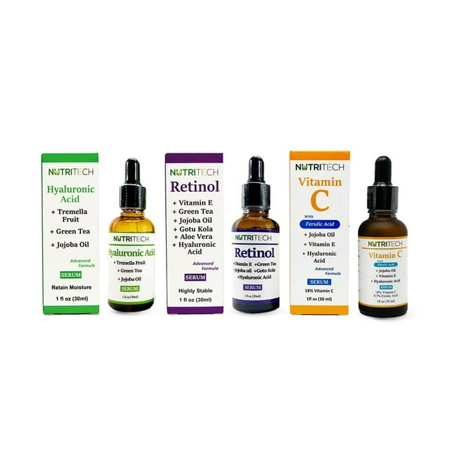 Kit de Sueros Faciales Anti Envejecimiento con Vitamina C, Ácido Hialurónico y Retinol