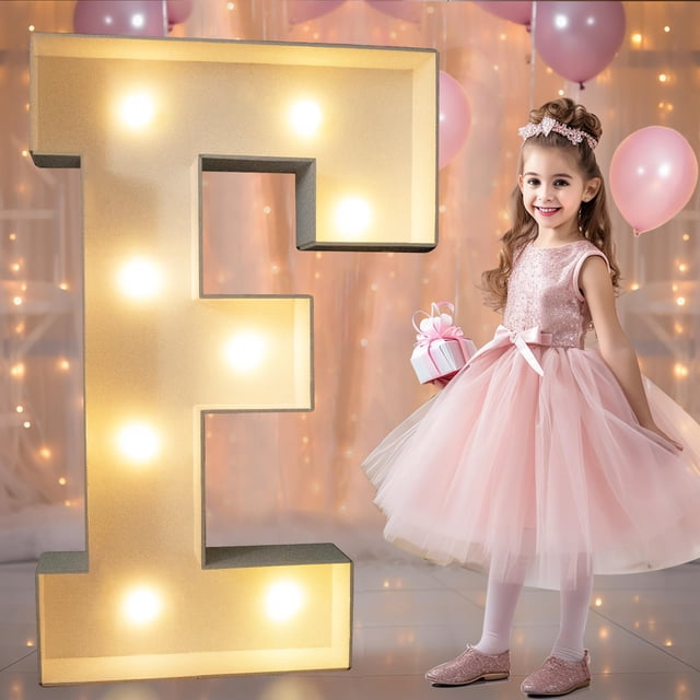 Letra F iluminada con letras LED Pooqla, 90 cm, color blanco cálido