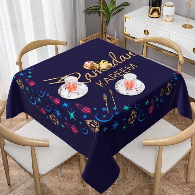 Mantel cuadrado lavable para Ramadán Kareem, mantel decorativo para bodas, fiestas, cenas, festivales, 54 x 54 pulgadas