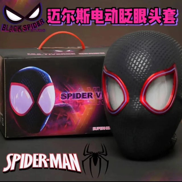Máscara de cabeza de Spiderman para adultos y niños, máscara electrónica con ojos móviles, juguetes elásticos con Control remoto, 1:1