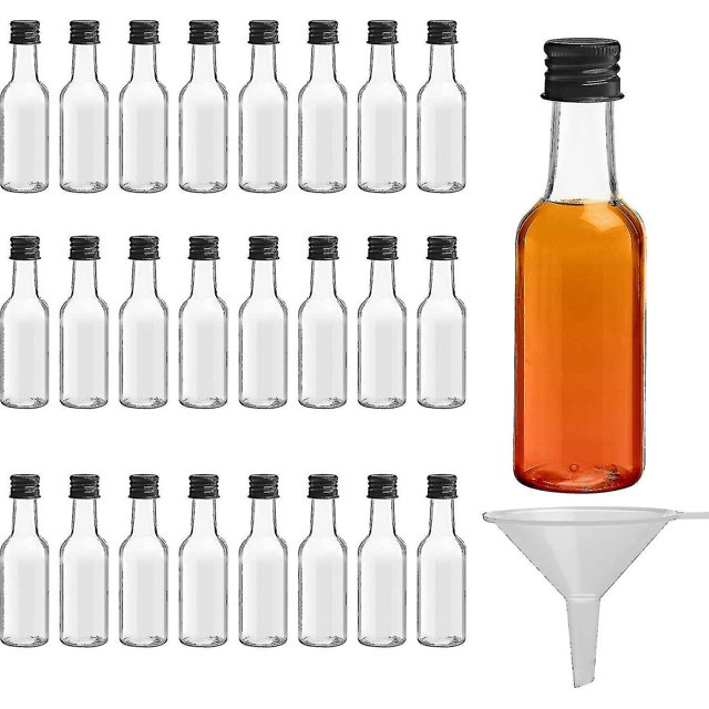 Mini botellas de licor (paquete de 24) - Botellas de alcohol vacías de plástico reutilizables de 50 ml con tapas de rosca negras y embudo de líquido para verter fácilmente, llenar botellas Vhermosa BST3035688