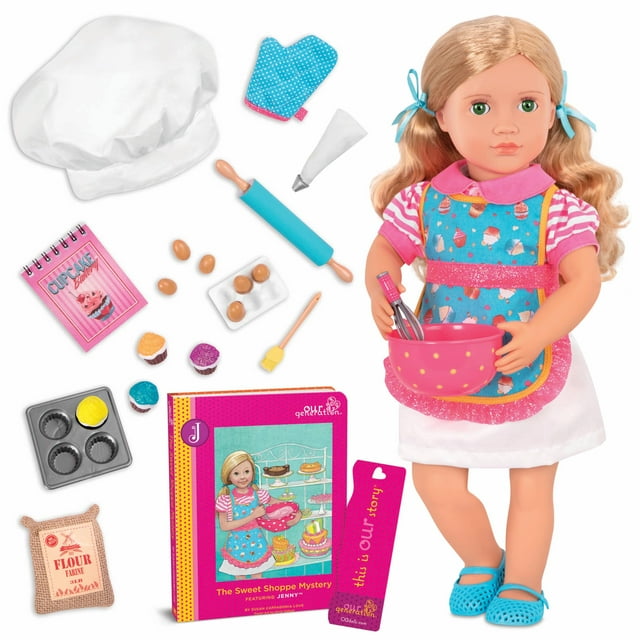 Muñeca plegable para hornear Our Generation Jenny de 18 pulgadas con accesorios