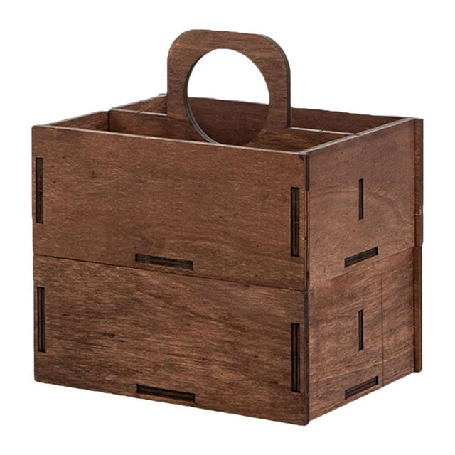 Organizador de escritorio de madera con compartimentos Organizador de almacenamiento de medios multipropósito Soporte de control remoto para tocador 2 capas con mango
