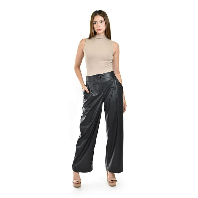 Pantalon de vinipiel pierna ancha Roman Fashion /Juvenil, 721 (Negro) negro M
