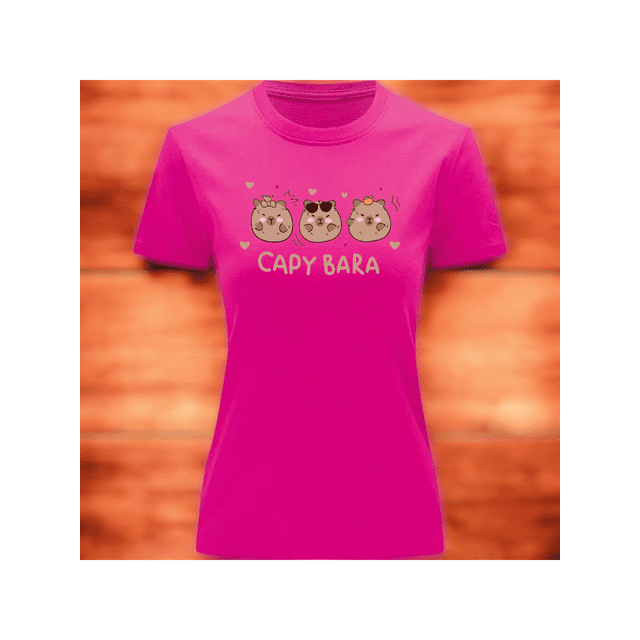 Playera Blusa Con Impresion De 3 Capybaras Bebes Fashion Ropa para Mujer Capibara Color Fucsia Talla Mediana Marca Emil SaEs