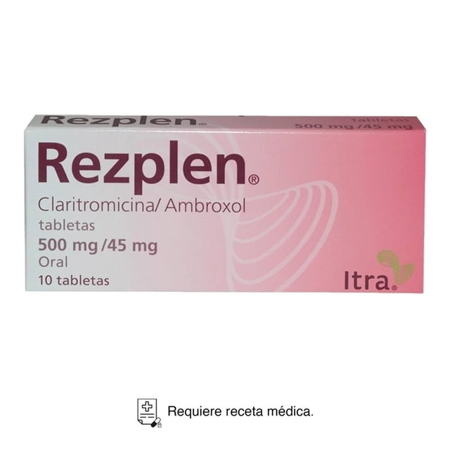 Imagen destacada 0 de Rezplen Claritromicina 500 mg, Ambroxol 45 mg 10 tabletas, 0 de 4